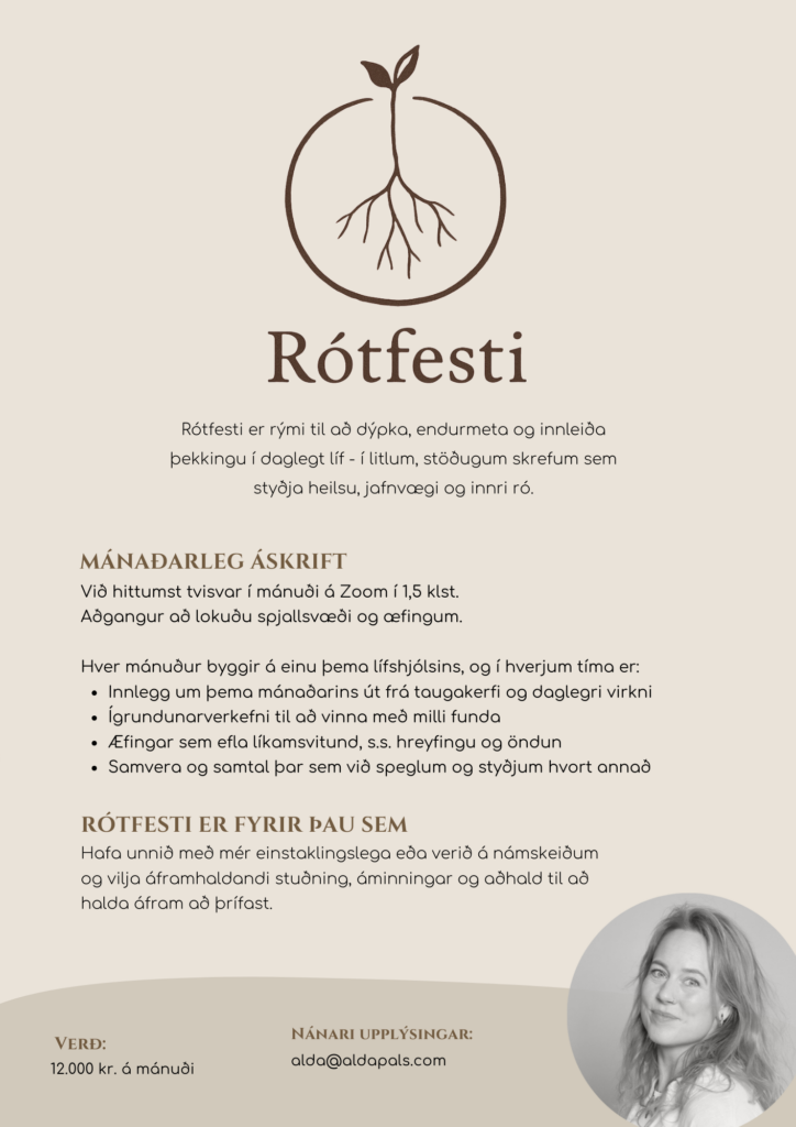 Rótfesti er rými fyrir þessa lífsins vinnu, á þínum forsendum.